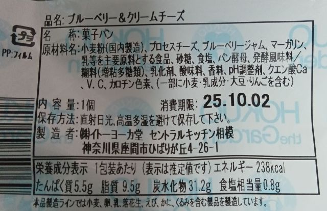 もっちりした生地の上にブルーベーリージャムが乗せてある。生地の中にはチーズが仕込んであり、大きさの割に食べごたえがある。もうちょっとジャムが多いとなお良い。