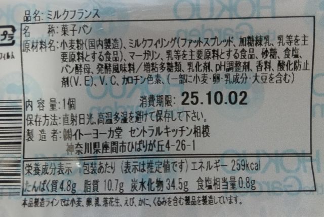 柔らかくて密度のあるフランスパンにミルククリームが挟んである。チョコが乗っているものと比べるとおとなしい味わい。パンのしっとりした歯ごたえが美味しい。