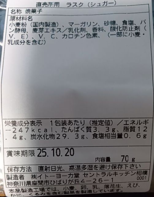 グラニュー糖がまぶしてあるラスク。ポリポリしている。やや脂分強めな気がする。