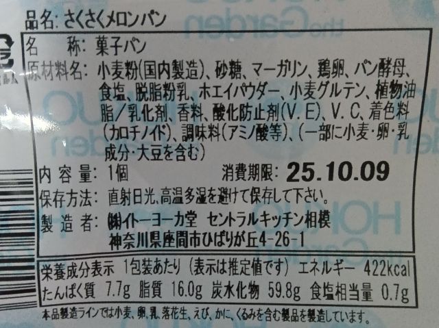 オーソドックスなメロンパン。開けたときのふわっとした香りが良い。カリモフ感は控えめ。