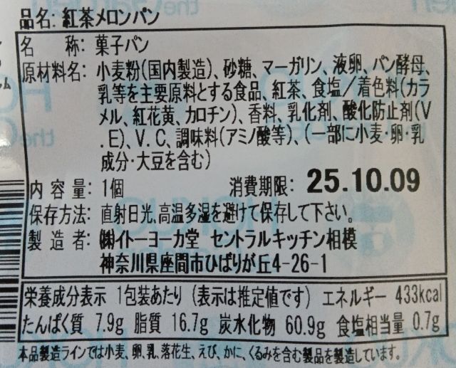 紅茶が練り込んであるメロンパン。紅茶っぽさはそれほど感じないが、パン生地にほんのりとした風味があって良い。