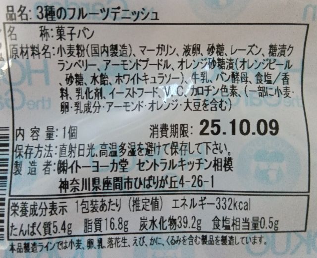 わりと普通のデニッシュ。レーズンがはいっているが、それほど量はない。